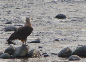 Flaying Animal | Haliaeetus leucogoster | Pallas's Sea Eagle | Band-Tailed Fish Eagle | It has a light brown hood over a white face. The wings are dark brown and the back rufous, darker underneath. The tail is black with a wide, distinctive white stripe. Underwings have a white band. Juveniles are overall darker with no band on the tail. It measures 72–84 cm (28–33 in) in length with a wingspan of 180–215 cm (71–85 in). Females, at 2.1-3.7 kg (4.6-8.2 lbs), are slightly larger than males, at 2-3.3 kg (4.4-7.3 lbs). Its diet consists primarily of large freshwater fish.